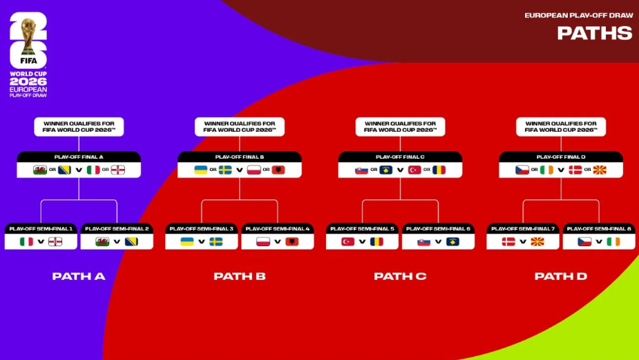 Europa también vivirá una intensa fase de repesca, con 16 selecciones luchando por los últimos cuatro cupos. Los enfrentamientos se organizaron en cuatro sectores, cada uno con dos duelos iniciales. Los ganadores de cada partido se enfrentarán entre sí para definir al clasificado final: