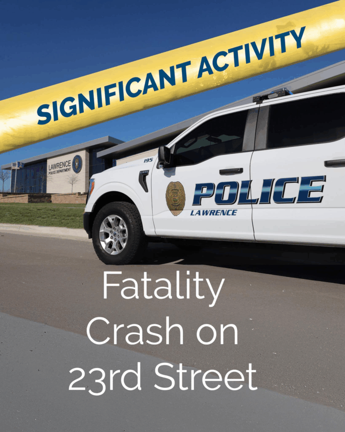 El Departamento de Policía de Lawrence, Kansas (LKPD) informó que los oficiales respondieron a la escena en la 1500 de la calle 23 Este, justo al oeste de la intersección con Harper, alrededor de las 7:00 pm, pocos minutos después de que ocurriera el impacto.