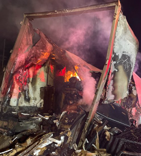 Ambos remolques tuvieron que ser separados y arrancados los laterales de los vehículos para acceder a la carga en llamas, según Reeves.