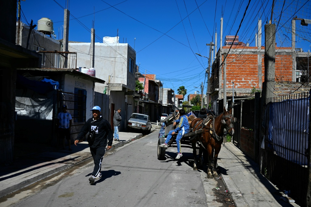 Una persona circula en un carro tirado por un caballo el 19 de octubre de 2025 en Villa Fiorito, en la periferia de Buenos Aires