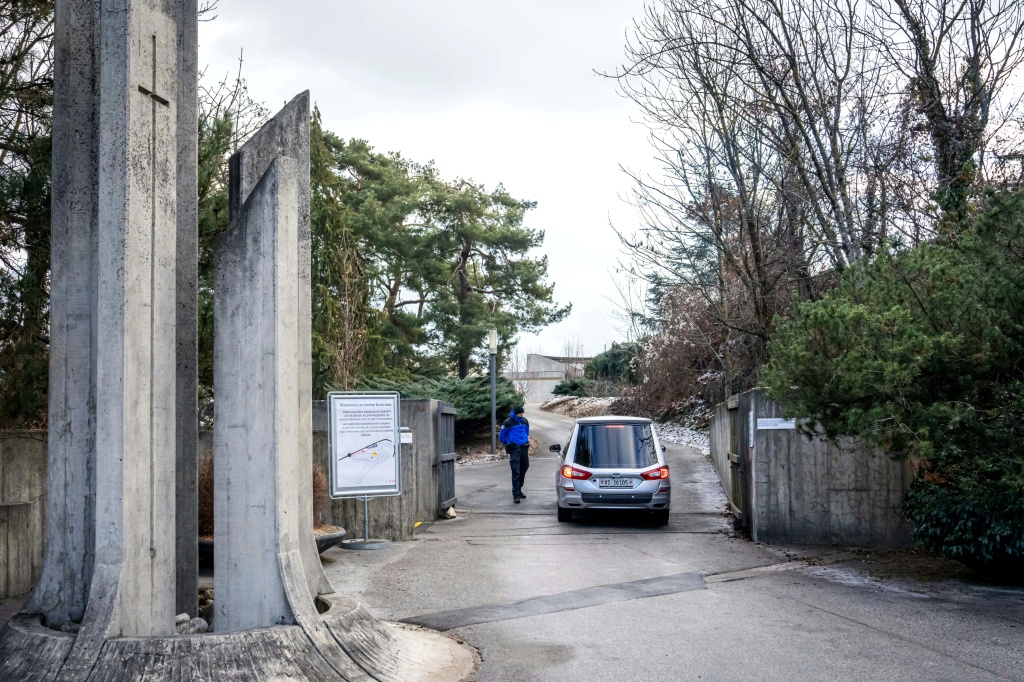Un coche fúnebre llega al tanatorio de Sion, en Suiza, el 2 de enero de 2026, al día siguiente del incendio en un bar de la estación de esquí de Crans-Montana