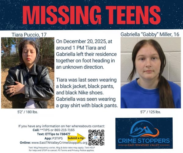 Se pide a cualquier persona que tenga información sobre su paradero que se comunique de inmediato con Crime Stoppers del Este de Tennessee, ya que cualquier dato puede ser clave para ayudar a encontrarlas de forma segura.