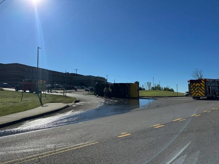 Mt. Juliet, Tn.- Un camión de basura se volcó esta mañana en la entrada norte de Mt. Juliet High School, pero las autoridades confirmaron que no hubo peligro para estudiantes ni personal.