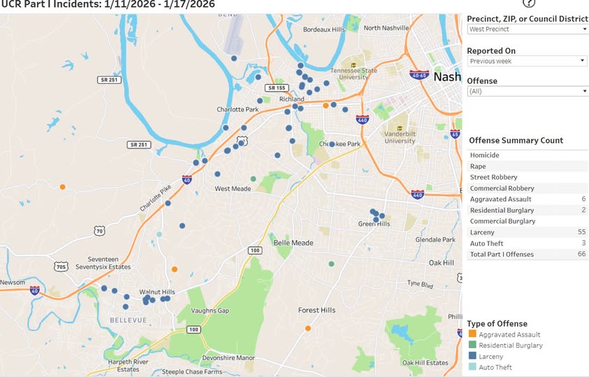 Nashville, Tennessee.- La Comisaría Oeste anunció una nueva iniciativa para fortalecer la transparencia y la comunicación con la comunidad, al poner a disposición de los residentes un mapa interactivo del delito.