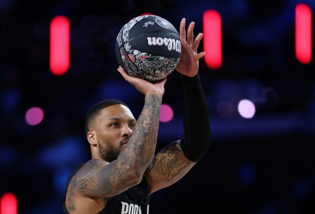 Damian Lillard durante su participación en el concurso de triples de la NBA el 14 de febrero de 2026