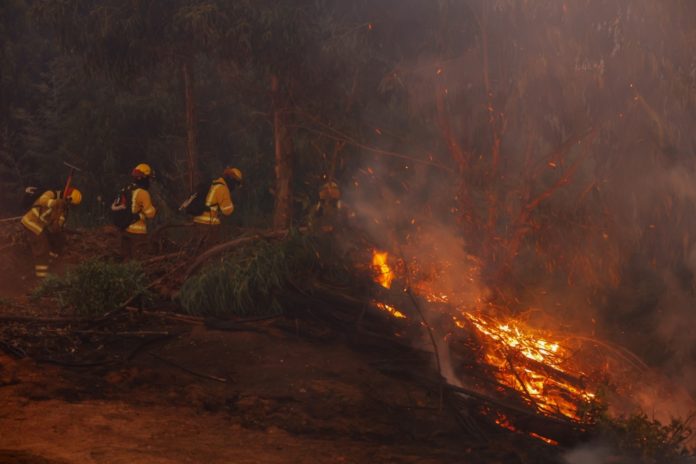 El martes unos 4.000 bomberos combatían 21 incendios en las tres regiones. Las llamas han devorado unas 40.000 hectáreas de bosques y terrenos, de acuerdo al reporte actualizado de la Corporación Nacional Forestal (Conaf).