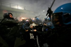 La policía estaba en estado de alerta máxima después de los violentos enfrentamientos que tuvieron lugar en una manifestación en Turín el pasado fin de semana, en la cual un centenar de policías resultaron heridos.