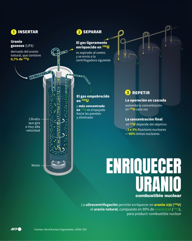 Presentación general del proceso de ultracentrifugación utilizado para enriquecer uranio con el fin de producir combustible nuclear