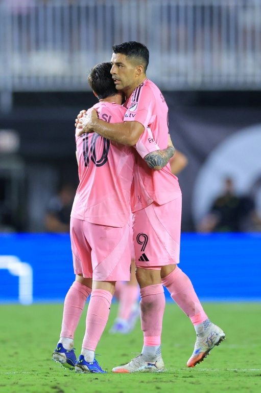 Luis Suárez (derecha) celebra un gol con Lionel Messi en la derrota del Inter Miami ante Chicago Fire el 30 de septiembre de 2025