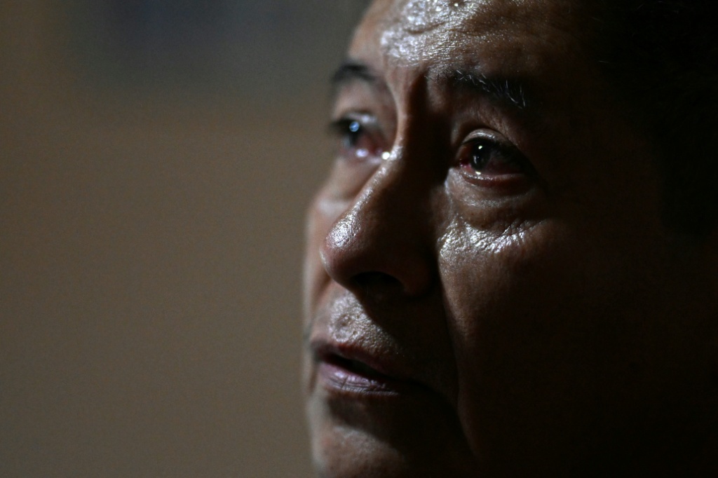 Reynaldo Santos, de 58 años, cuyo hijo está agrupado para ir a un juicio masivo, llora en una entrevista con AFP en su casa en Soyapango, El Salvador, el 9 de marzo de 2026