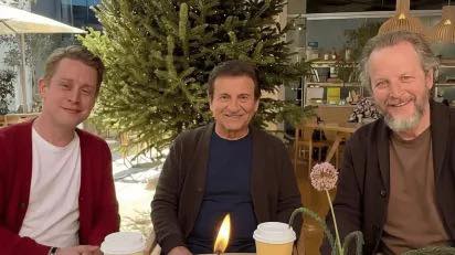 En la fotografía se ve a Macaulay Culkin, Joe Pesci y Daniel Stern juntos en una cafetería, en lo que parece ser una amena conversación.
