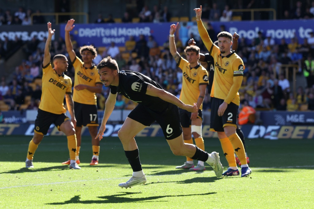 El centrocampista portugués del Tottenham Joao Palhinha celebra su gol contra el Wolverhampton, en el Molineux Stadium el 25 de abril de 2026 en partido de la Premier League. AFP