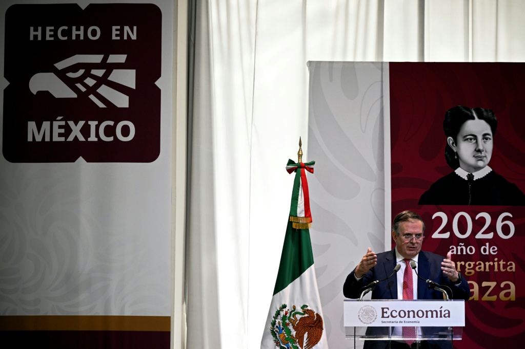 El secretario de Economía de México, Marcelo Ebrard, presenta los resultados de la consulta pública sobre el tratado de libre comercio con Estados Unidos y Canadá (T-MEC), el 9 de marzo de 2026 en Ciudad de México