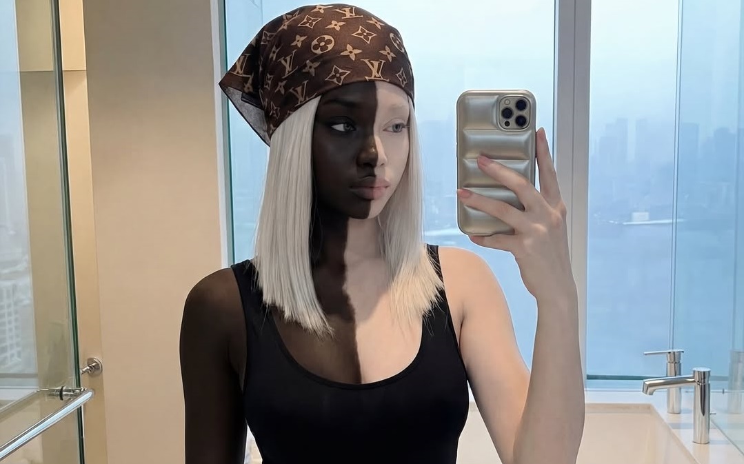 En las imágenes compartidas se observa que la condición autoinmune que provoca la pérdida de pigmento avanzó hasta cubrir aproximadamente la mitad de su cuerpo, despertando la curiosidad de miles de internautas, quienes no dejan de escribirle en cada publicación que comparte.