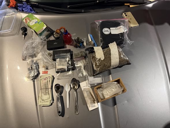 Durante la inspección, hallaron aproximadamente nueve gramos de presunta metanfetamina , medio kilo de presunta m4rihu4n4, una pequeña cantidad de presunta heroína, parafernalia de drogas y varias armas de fuego, incluidas dos pistolas y tres escopetas, una de ellas reportada como robada en Carolina del Norte en 1996.
