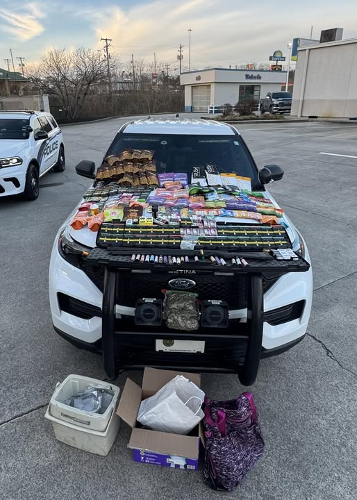 LENOIR CITY, TENNESSEE.- El Departamento de Policía de la Ciudad de Lenoir informó que una parada de tráfico de rutina realizada el martes derivó en una importante incautación de productos ilegales de THC y un arma de fuego.