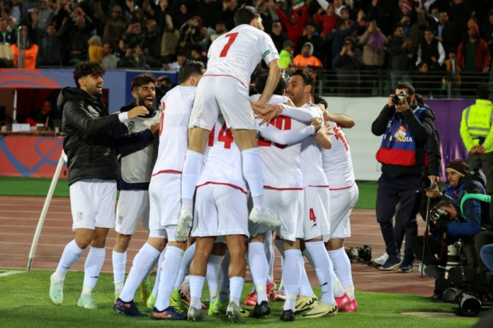 Los futbolistas de la selección de Irán festejan un gol marcado a Uzbekistán en un partido clasificatorio para el Mundial, en Teherán, el 25 de marzo de 2025. AFP