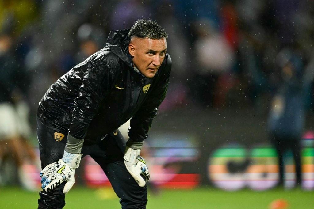 El portero costarricense Keylor Navas calienta previo al partido de su equipo, Pumas, ante Guadalajara por la liga mexicana en el estadio Olímpico Universitario en la Ciudad de México el 5 de octubre de 2025