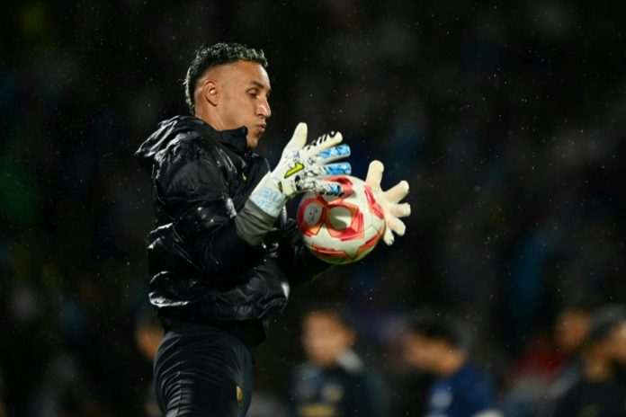El portero costarricense Keylor Navas calienta previo al partido de su equipo, Pumas, ante Guadalajara por la liga mexicana en el estadio Olímpico Universitario en la Ciudad de México el 5 de octubre de 2025