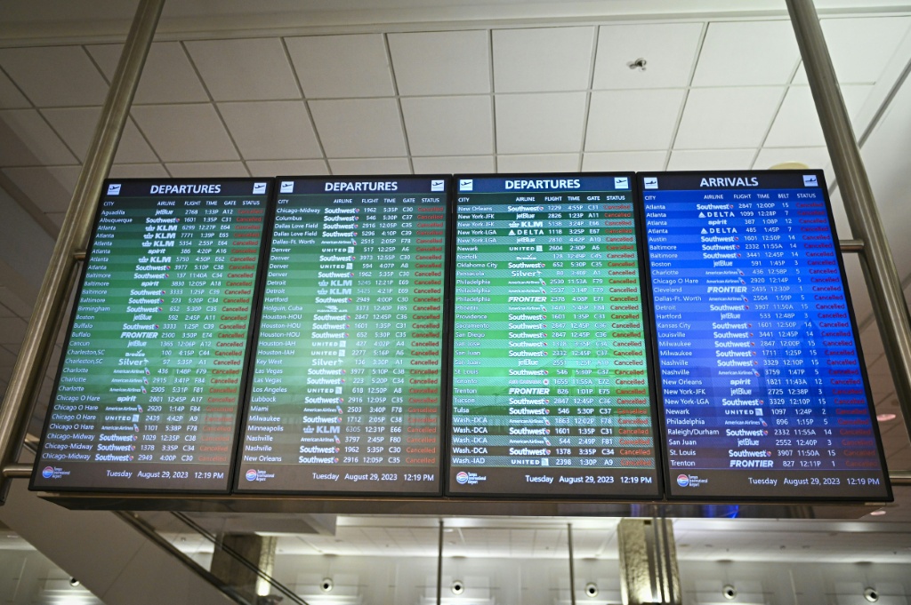 Unas pantallas con información de vuelos del Aeropuerto Internacional de Tampa, en Florida, Estados Unidos, en una imagen del 29 de agosto de 2023