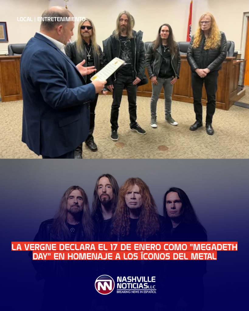La ciudad de La Vergne, Tennessee, declaró oficialmente el 17 de enero de 2026 como “Megadeth Day” en reconocimiento a la legendaria banda de thrash metal y su impacto global en la música pesada. La proclamación fue entregada en el ayuntamiento el 16 de enero por el alcalde Jason Cole, acompañado del vicealcalde y varios concejales, quienes destacaron las “contribuciones extraordinarias de Megadeth a la música, su impacto cultural duradero y su influencia en artistas y fanáticos de todo el mundo”.
