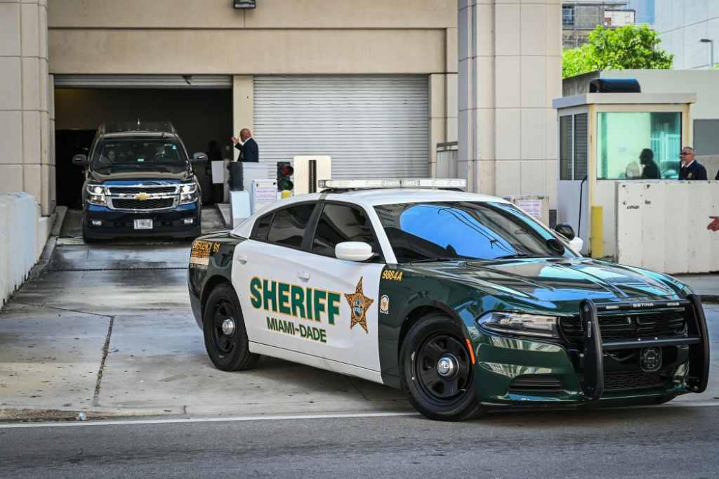 La caravana del secretario de Estado de Estados Unidos, Marco Rubio, sale del Edificio Federal de Justicia James Lawrence King, en Miami, el 24 de marzo de 2026.