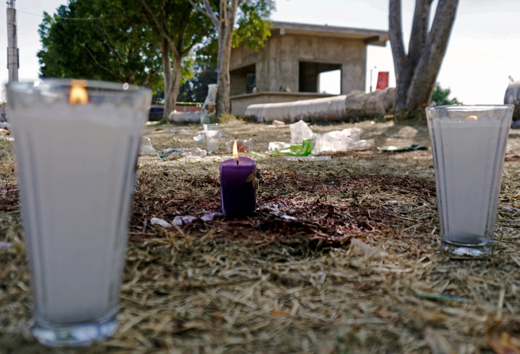 Unas velas colocadas en el campo de fútbol donde se produjo el ataque, en Salamanca, en el estado mexicano de Guanajuato, fotografiadas el 26 de enero de 2026
