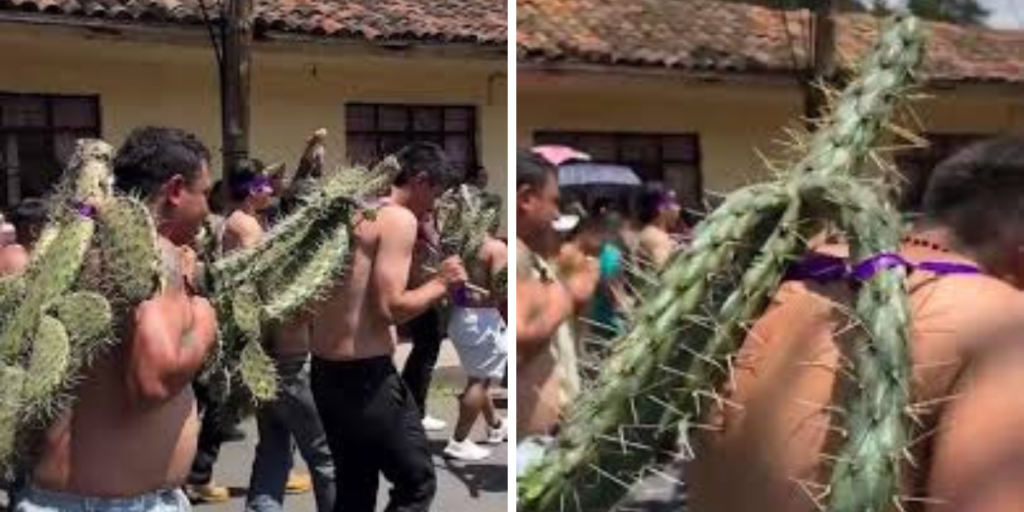 Michoacán vive impactante tradición en Viernes Santo con hombres cargando nopales espinosos sobre sus espaldas descubiertas