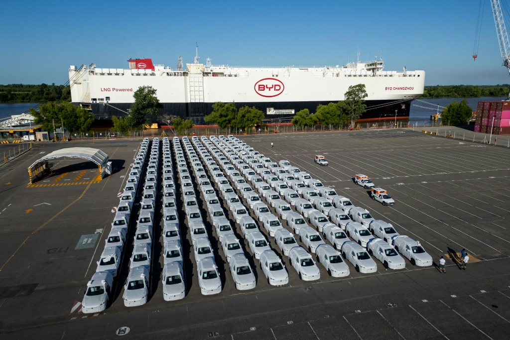 Automóviles chinos descargados del buque BYD Changzhou en el puerto de Zárate, en la argentina provincia de Buenos Aires, el 19 de enero de 2026. AFP