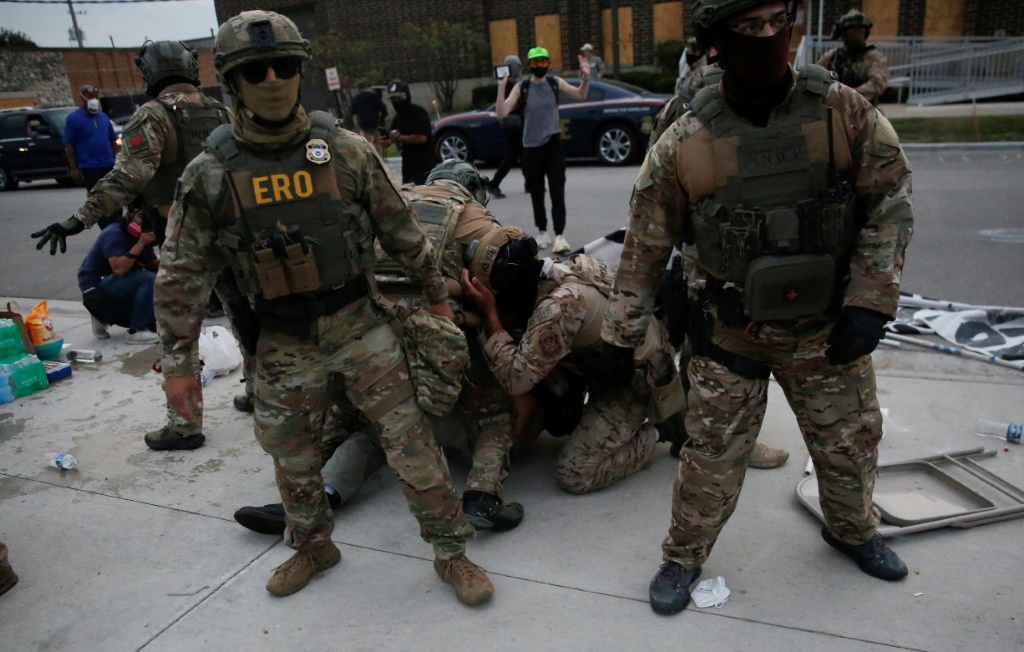 Juegan un rol destacado los agentes del Servicio de Inmigración y Control de Aduanas (ICE), quienes suelen llegar armados y con el rostro cubierto para realizar redadas en lugares públicos contra migrantes indocumentados.