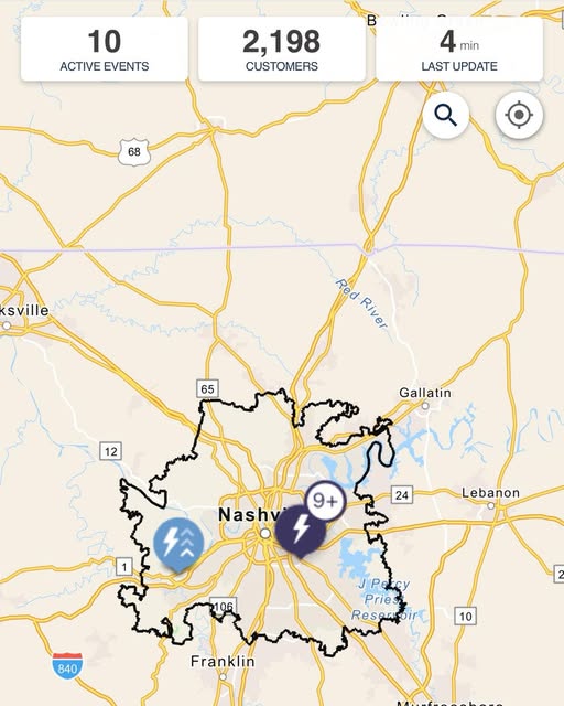 Nashville, Tennessee.- NES informó que mas de dos mil usuarios estaban sin energía desde el miércoles por la tarde en el área de Murfreesboro Pike.