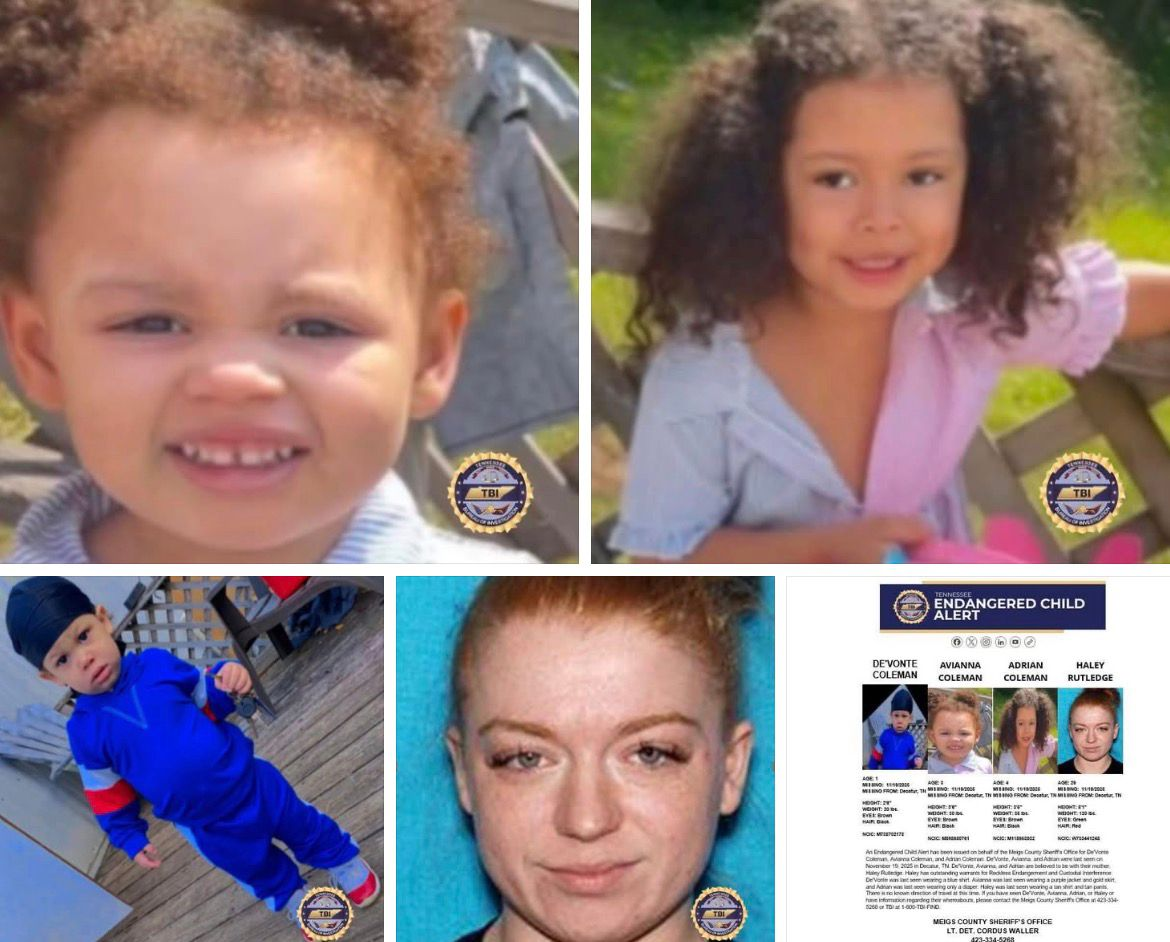 Cleveland, Tennessee — Una alerta de menor en peligro emitida por la Oficina de Investigaciones de Tennessee (TBI) concluyó con éxito el viernes por la noche, cuando tres niños, identificados como Adrian Coleman, Avianna Coleman y De’Vonte Coleman Jr., fueron encontrados sanos y salvos en Cleveland, Tennessee.