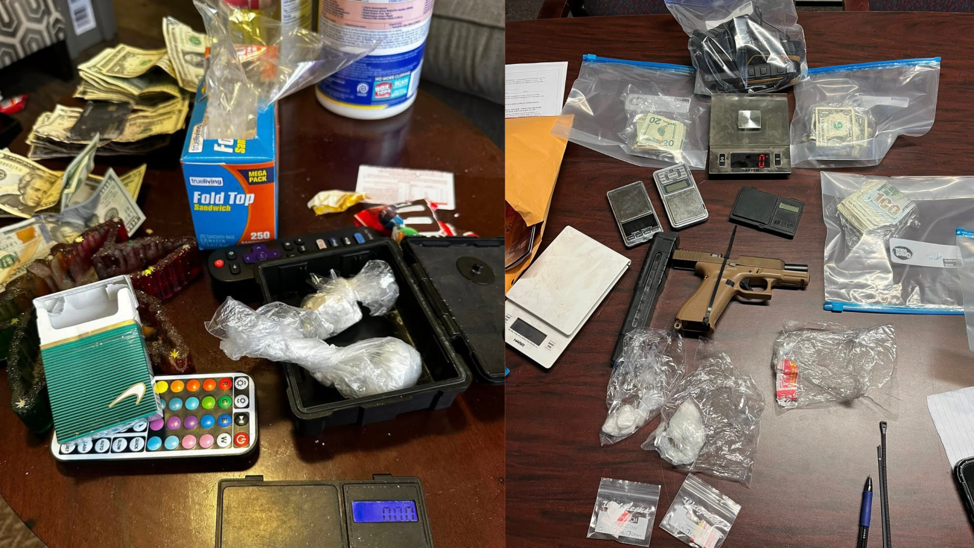 Uno de los detenidos enfrenta cargos graves, entre los que destacan dos delitos por posesión de sustancias controladas (fentanilo y cocaína) con intención de distribución, además de posesión de un arma durante la comisión de un delito peligroso. El segundo arrestado fue vinculado a órdenes judiciales por delitos menores no relacionados directamente con la operación del mercado de drogas residencial.