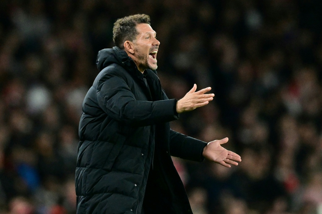 El entrenador argentino del Atlético de Madrid Diego Simeone da instrucciones a sus jugadores durante el partido de Champions contra el Arsenal, el 21 de octubre de 2025 en el Emirates Stadium de Londres