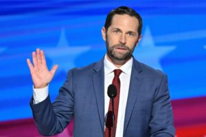 El legislador estadounidense Jason Crow toma la palabra en una Convención Nacional Demócrata, en Chicago, el 22 de agosto de 2024