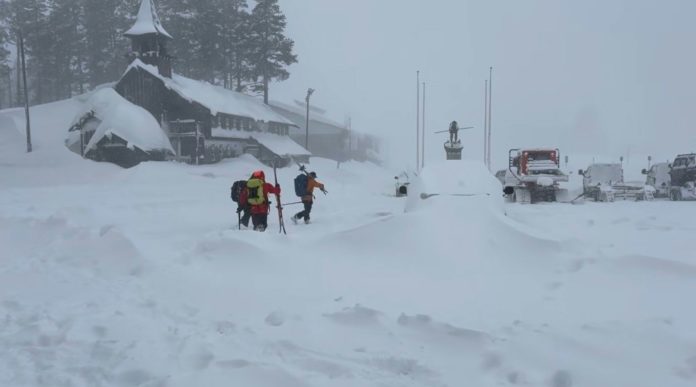Un equipo de rescate se encamina hacia el área de la avalancha de nieve en el Pico Castle, en Truckee (California, EEUU), el 17 de febrero de 2026. AFP
