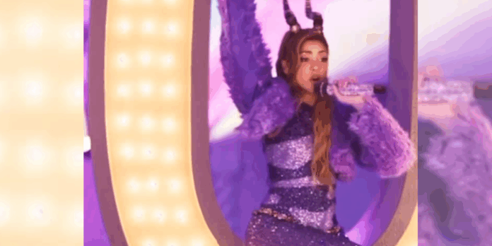 La cantante colombiana luce un traje púrpura brillante y una estética que recrea el estilo de su personaje animado, una gacela llamada Gazelle.