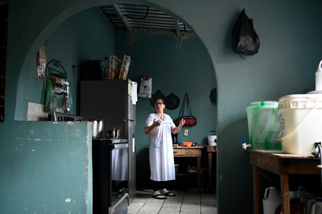 En el vecino barrio 14 de Enero, de callejones empinados, atravesado por un río de aguas sucias y donde deambulan perros y gallinas, Presentación Núñez, de 70 años, construye una vivienda con bloques de cemento al borde de un risco.