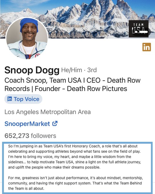 El propio Snoop Dogg reaccionó con entusiasmo a su nombramiento: “Los atletas de Team USA son las verdaderas estrellas. Yo solo quiero animar, elevar y, tal vez, dejar caer un poco de sabiduría desde la banda. Si puedo sumar motivación y amor, eso ya es una victoria para mí”, declaró en entrevista con People.