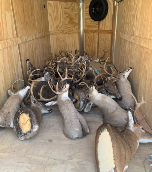 Las órdenes de registro permitieron confiscar 50 cabezas y astas de ciervo de cola blanca, una cabeza de pavo salvaje y una ardilla zorro en posesión ilegal. También se decomisaron armas utilizadas en las infracciones: un fusil, un fusil de avancarga y una ballesta.