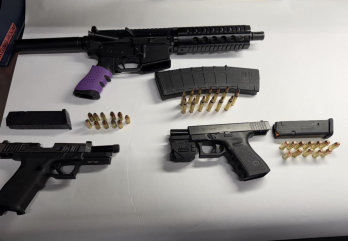 Tras realizar una inspección, los oficiales descubrieron que los tres individuos portaban armas de fuego cargadas. Dos de los detenidos son menores de edad, mientras que el tercero es un joven de 18 años. Entre el armamento confiscado, las autoridades reportaron el hallazgo de cargadores de gran capacidad y lo que ha sido clasificado bajo la ley estatal como un arma de asalto.