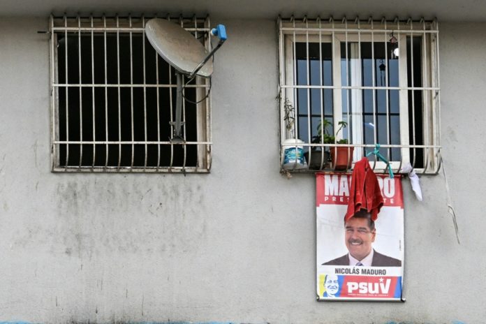 Un cartel del depuesto presidente de Venezuela Nicolás Maduro, colgado en una ventana de un complejo de viviendas en Caracas el 23 de enero de 2026. AFP