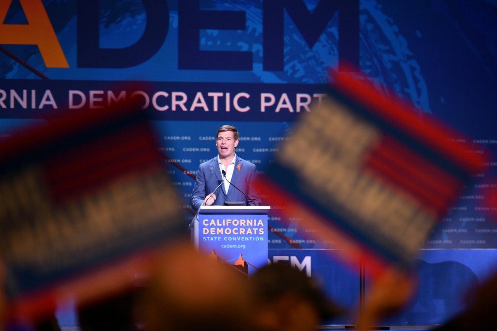 El congresista estadounidense Eric Swalwell pronuncia un discurso en una Convención Estatal de California del Partido Demócrata, en San Francisco, el 1 de junio de 2019