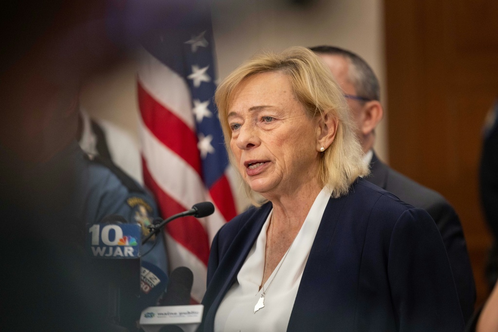 La gobernadora de Maine, Janet Mills, en una rueda de prensa en Lewiston (EEUU) el 26 de octubre de 2023