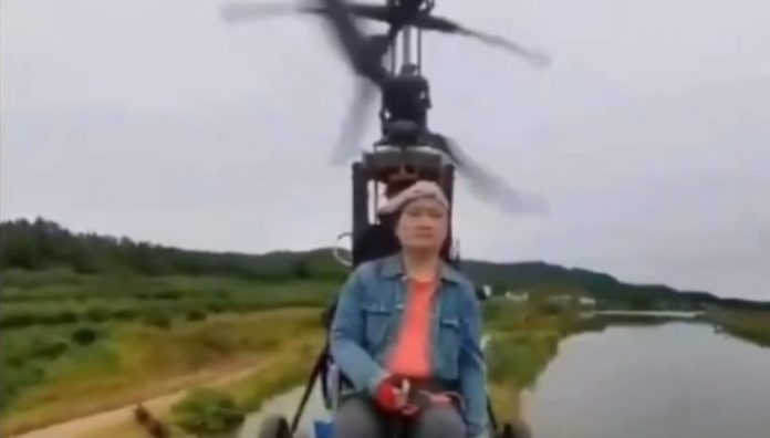 En Douyin, una versión de TikTok, el creador de contenido hacia la demostración de un helicóptero unipersonal y ultraligero, por lo que cientos de personas miraban la transmisión en vivo.