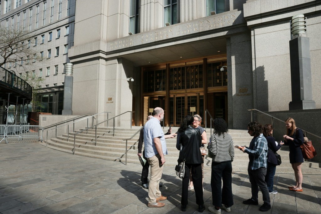 Unos reporteros realizan entrevistas delante del Tribunal Federal de Manhattan, en Nueva York, el 15 de abril de 2026, tras las conclusiones sobre el caso de monopolio de Live Nation