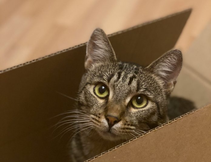 (VIDEO) Gata se roba la atención por su increíble fascinación a las cajas de cartón a otro nivel