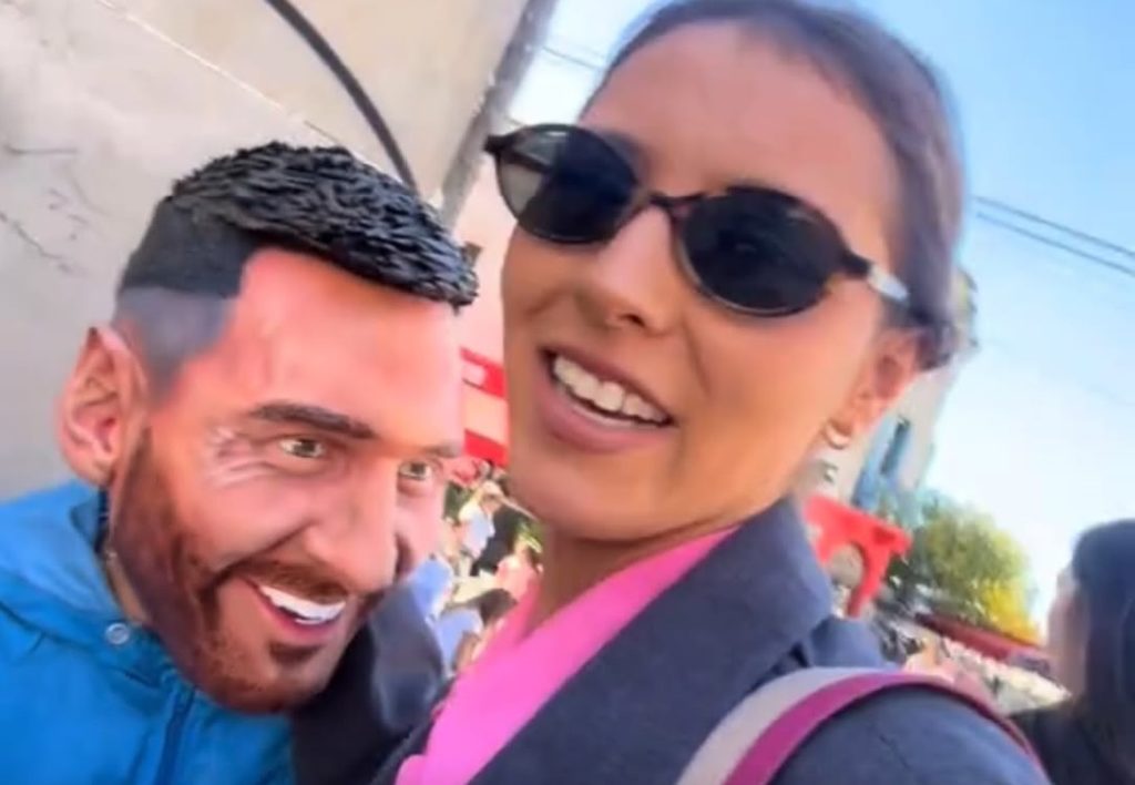 Mientras caminaba por una plaza, una joven se llevó una gran sorpresa al confundir a un hombre con una supuesta estatua de Lionel Messi.