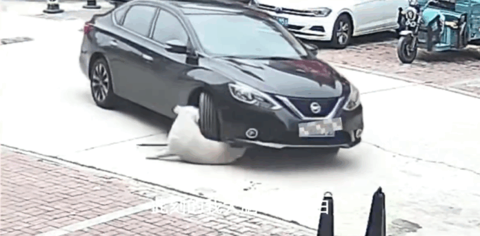 Según publican medios locales, un labrador de 64 kilogramos llamado Yuan Yuan quedó debajo de la rueda delantera de un vehículo porque el conductor no se percató de la presencia del animal y dio marcha atrás.