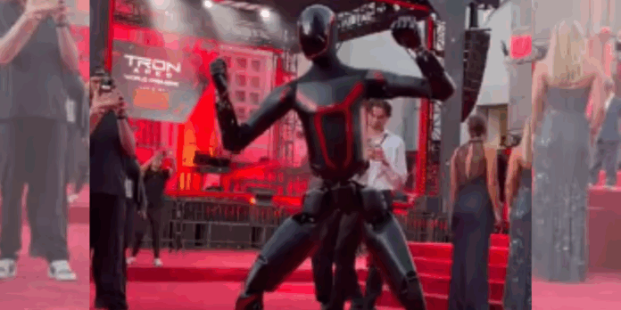 En una alfombra roja de Hollywood, realizada en Los Ángeles, el robot humanoide de Tesla demostró movimientos de artes marciales durante el estreno mundial de la película TRON: ARES.
